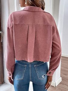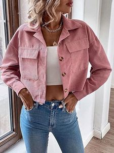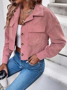 2024欧米アマゾンの新商品女性ファッションの短いコーデュロイのボタンジャケットの上着の短いカジュアルコート