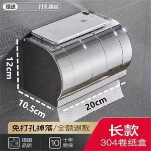 304ステンレスティッシュボックス穴なしトイレロール紙箱ホテル防水トイレットペーパーボックス壁掛け式引き出し紙箱