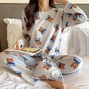 高級春秋夏丸襟長袖2点セットカジュアルゆったり大きいサイズファッションアニメソフト薄手タイプホームウェア