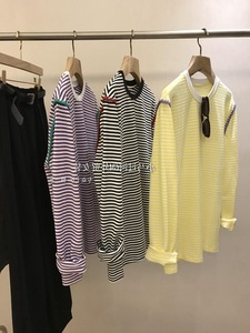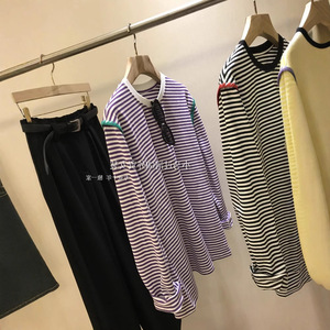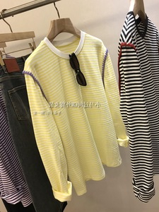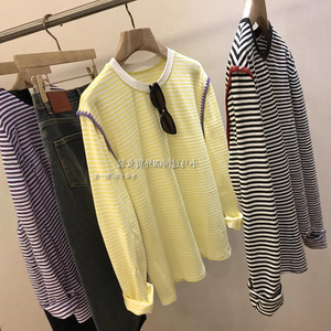 絶対に、色を上半身に着る既視感! 綿質の衝突色の貝殻はストライプの長袖のtシャツの上着の女性を刺繍します。