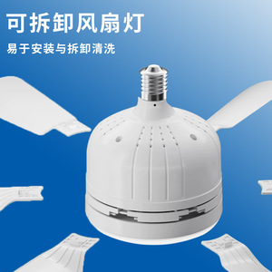 国境を越えたシャンデリアLEDプラグ風葉E27E26ファンランプ多機能三色調光寝室リビングファンランプ