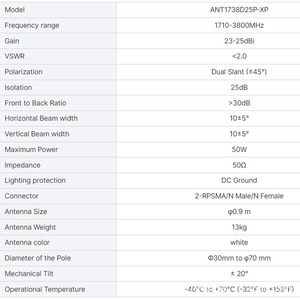 1710-3800MHz 25dBi LTE/5G屋外パラボラアンテナ2.4G MIMO屋外指向性アンテナ