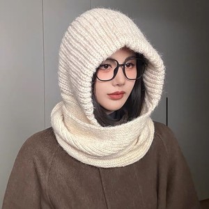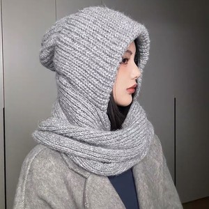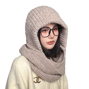 韓国版無地バラクラバ帽子秋冬暖かい防風ネックプロテクションニットスカーフ帽子オールインワンつば帽子