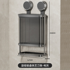 ノブ吸盤錬鉄製ナイフホルダー(ガングレー)