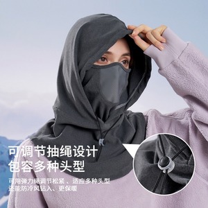 秋冬は防風帽子のマフラーの首に乗って一体になっています。
