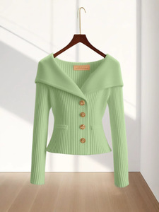 怠惰な風の独特な独特な上着の女装の春と秋の2024の新型の対外貿易の尾の単はやせているセーターのニットを現します。
