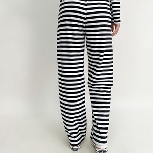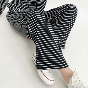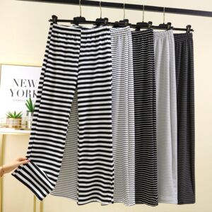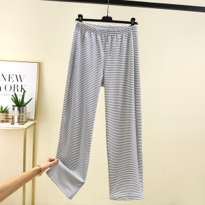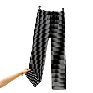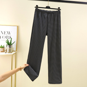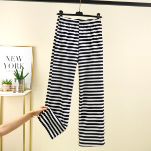 徳絨毛保温厚手寝ズボン女性秋冬高腰カジュアルホームパンツ白黒ストライプゆったりストレートロングパンツ
