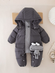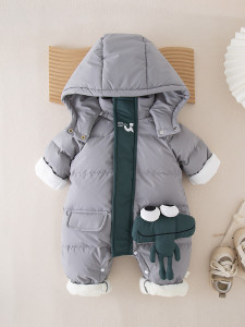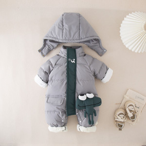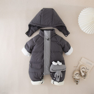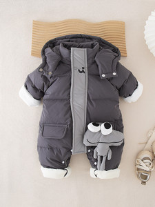冬の赤ちゃんの漫画のカエルのダウンジャケットの連体服は厚くて暖かいです。