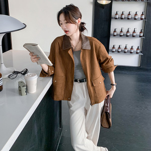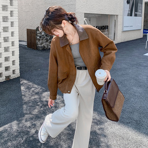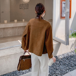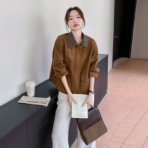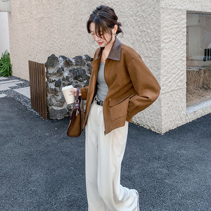 メイラードブラウンスエードジャケット レディース 2025秋新作 エレガントカジュアルジャケット シックショートジャケット