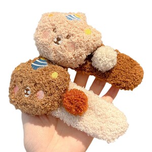 ぬいぐるみの丁熊は女性の秋冬の無痕の一字のカモの口を挟んで飾ります。