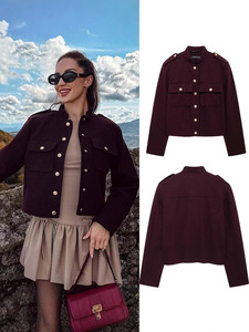 速卖通人気商品 秋の新作 レディースファッション スタンドカラー ヴィンテージ風 カジュアルジャケット ボタン留め ショート丈ジャケット