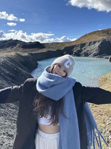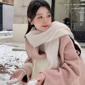 純色の雰囲気感のあるマフラーの女子学生は冬に新しい韓国版の学生を合わせて、厚いマカロンの色が白いマフラーの潮を表します。
