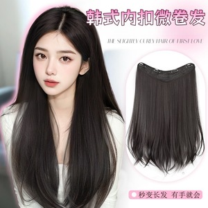 かつらの女性の一枚式の韓国系の微巻の中で長いストレートの髪を掛けて、ふんわりとしています。