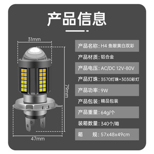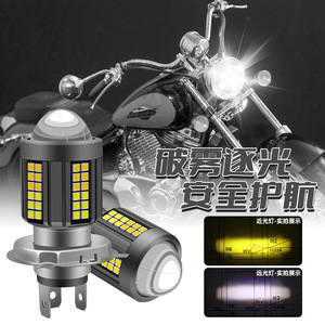 オートバイヘッドライトLED H4魚眼型黄白遠近光一体型三爪電動車両二色光効果高輝度特価