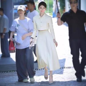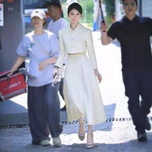 2024秋名媛気質同型白小香風ワンピースショートコートとa字スカートセット1848
