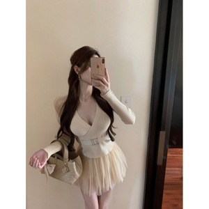 フランス式の純粋な欲の甘いギャルの蘇格の小さい香のデザイン感の襟は腰を収めてやせている弾力のメリヤスのニットの短い上着の女性を現します。