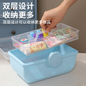 透明収納ボックス美術ツールボックス絵の具絵筆ボックス多機能家庭用医薬ボックス手持ち式二重クッカー