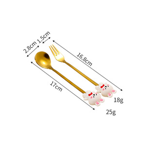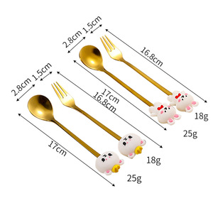 ステンレスフォークスプーンセットクリエイティブ漫画人形デザートスプーンフォーク金色コーヒー攪拌スプーン果物フォークケーキフォーク