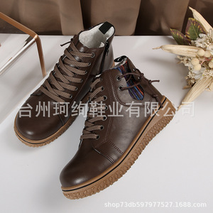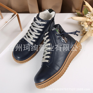 クロスボーダー大きいサイズ秋冬新作女性用スノーブーツ、フラットヒールマーティンブーツ、レースアップジッパー、コットン入りレディースコットンシューズ、大きいサイズ