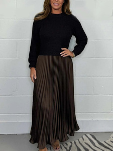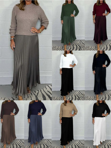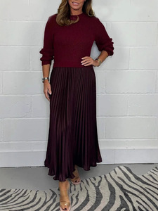 在庫あり 2025年秋冬 欧米越境独立サイト AliExpress 無地ニット長袖プルオーバー パッチワークプリーツドレス