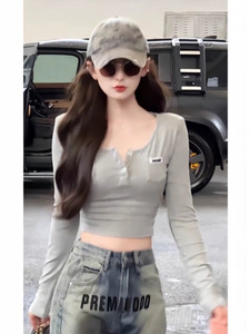 新しい秋のアメリカの甘いギャルの半開襟のファッション的な長袖のtシャツの女性の修身はやせている底のシャツの短い上着を現します。
