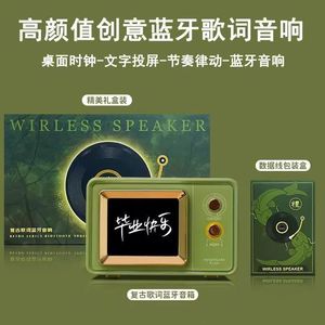 レトロなダイナミック歌詞bluetooth 5.3スピーカーの文字表紙にスクリーンを投げてプレゼントします。自動同期デスクトップ時計を祝福します。