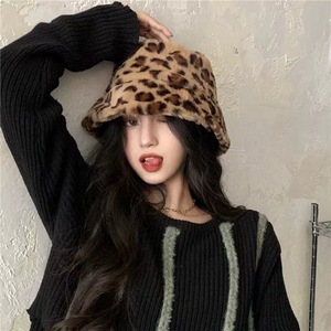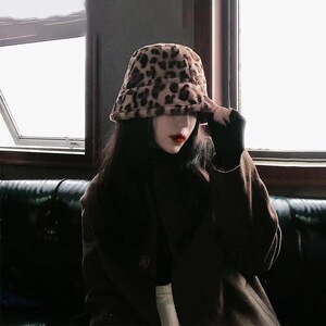 帽子の女性は冬に顔を見せます。ヒョウ柄漁師帽の女性ファッション防寒保温盆帽