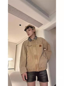 Cleanfitアメリカのレトロな水洗いは古いデニムのカハ風のヴィンテージのデトロイトの工装のジャケットをします。