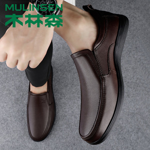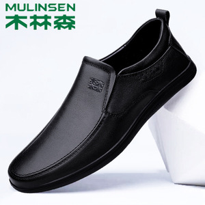 木林森男靴夏の本革カジュアル革靴軟底軟皮カバー足セット運転靴男性サイズ4748