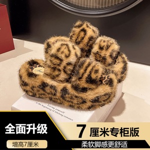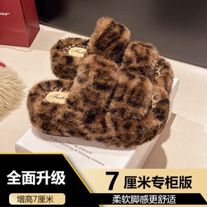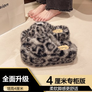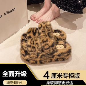 レオパード柄厚底増高ファーサンダル レディース 外履き 2025年秋冬新作 おしゃれ ホームファーリーサンダル