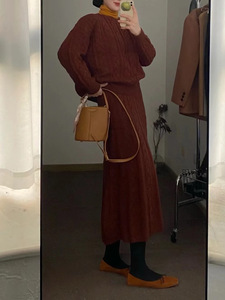 秋冬の優しいレトロな花のニットの尾のスカートの2つのセットの怠惰でゆったりした高級感のある麻花のセーターのスーツ