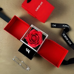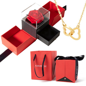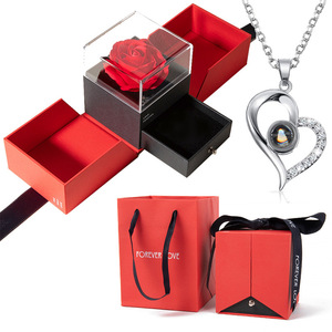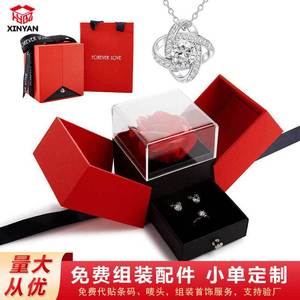 クロスボーダーの赤いバラのギフトボックスの指輪のアクセサリーの箱の双開のアクセサリーの箱のバレンタインデーの永生の花のネックレスの箱の卸売り