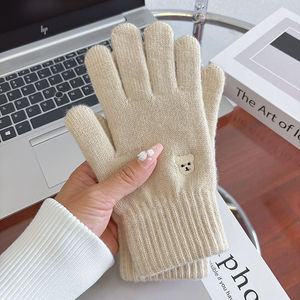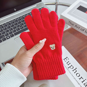 2024新型ニット手袋かわいいシンプルな純色毛糸露二本指女性タッチできる手袋保温防寒