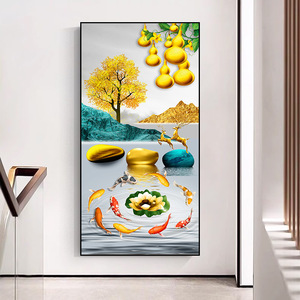 玄関装飾画九魚図軽豪華高級客間大気鹿掛け画入戸門廊下通路壁壁画