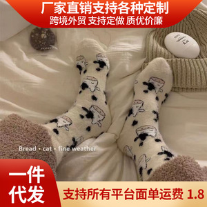 ミンクの毛の靴下の女性の春と秋の中筒の厚いベルベットの保温のサンゴの毛の防寒睡眠の床の月子