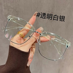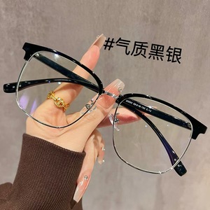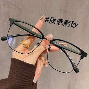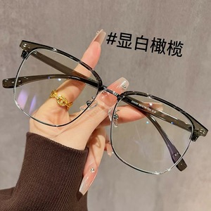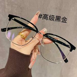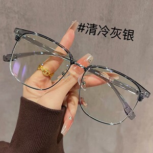 冷茶色半框眼镜近视女可配度数素颜大脸显瘦眼睛镜框架