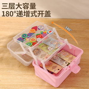 小学生1年生用ツールボックス3層折りたたみ式絵画ボックス、折りたたみ式絵画用具収納ボックス、折りたたみ式ネイルアート収納ボックス