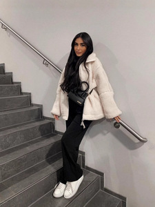 アマゾンクロスボーダー欧米レディース秋冬新作ファッションゆったり防止カシミヤ個性カジュアルアウトドアジッパーコート