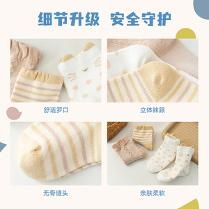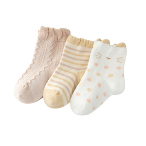 2024秋冬新作子供靴下横条乳幼児赤ちゃん靴下A類無骨手縫い精練綿中筒靴下