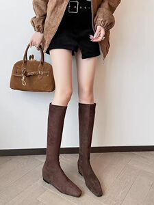 スエードのフランネルの小さい方の頭の中で高くなる美ラードの長靴の小さい背は高くなってやせている初秋の茶色の長靴を現します。