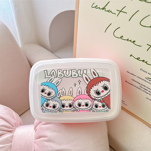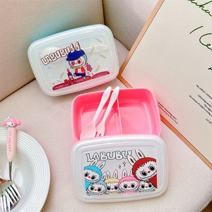漫画布弁当箱双格鮮度保持箱学生弁当箱昼食箱溢れ防止弁当箱日系ご飯食器付き