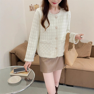 秋冬の新型のフランス式の小さい香りの風のコートはゆったりしています。