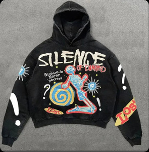 新国境を越えたサイレンスのパーカーの首の発泡プリントの水洗いと帽子のプルオーバーがゆったりしていて、よく売れています。