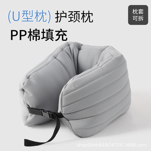 日系u型枕汗布首枕縞泡粒子枕旅行家無印金はロゴ付き首枕