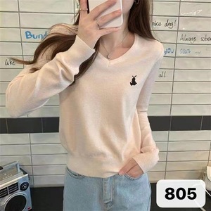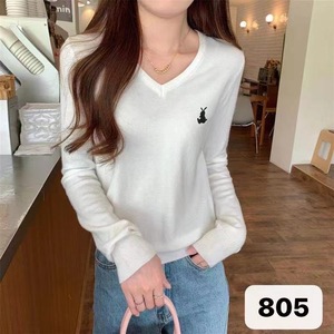 实拍实价 秋季韩版v领百搭刺绣减龄包芯纱针织衫长袖打底上衣女