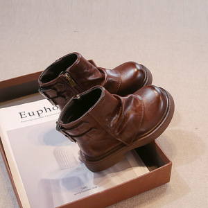 女の子の靴の厚い底の茶色のマーティンの靴の女性の大きい子供の秋冬のタイプの王女の騎士の靴の山のショートブーツの韓国版の中で筒の靴