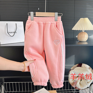 子供用のベルベットのズボンの厚いズボンのカジュアルなスポーツモデルは、ゆるい赤ちゃんのベルベットのズボンを着て、子供の冬のズボンが湿っています