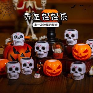 ハロウィーンの光るカボチャは杯を押して子供のおもちゃをつまんで解凍してカボチャの杯の夜市の露店の卸売りを発散します。