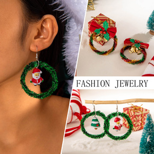 欧米のクロスボーダーの新型クリスマスツリーの蝶結びの色の花輪のイヤリングの個性の鈴のクリスマスシリーズの耳飾りの女性