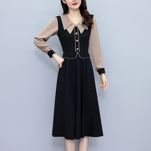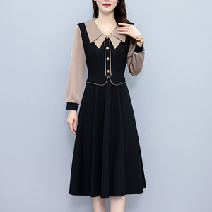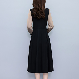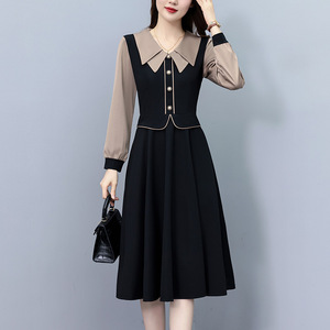 ネットの赤い職場の気質の大きいサイズの婦人服の太っているmmの修身の中で長いタイプの春秋の新型の長袖のワンピースは色にぶつかってつなぎ合わせます。